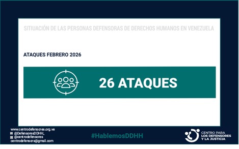 El entorno para la defensa de los derechos humanos en Venezuela se mantiene bajo una política sistemática de criminalización y control. La persistencia en los ataques evidencia que el Estado utiliza mecanismos legales y tácticas de intimidación para neutralizar a la sociedad civil. La estigmatización como principal forma de agresión busca deslegitimar la labor de defensa, mientras que la falta de garantías institucionales confirma que el espacio cívico sigue siendo restringido y hostil para quienes promueven los derechos fundamentales.