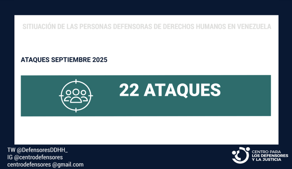 El Centro para los Defensores y la Justicia (CDJ) registró 22 ataques e incidentes de seguridad durante septiembre de 2025 en Venezuela.